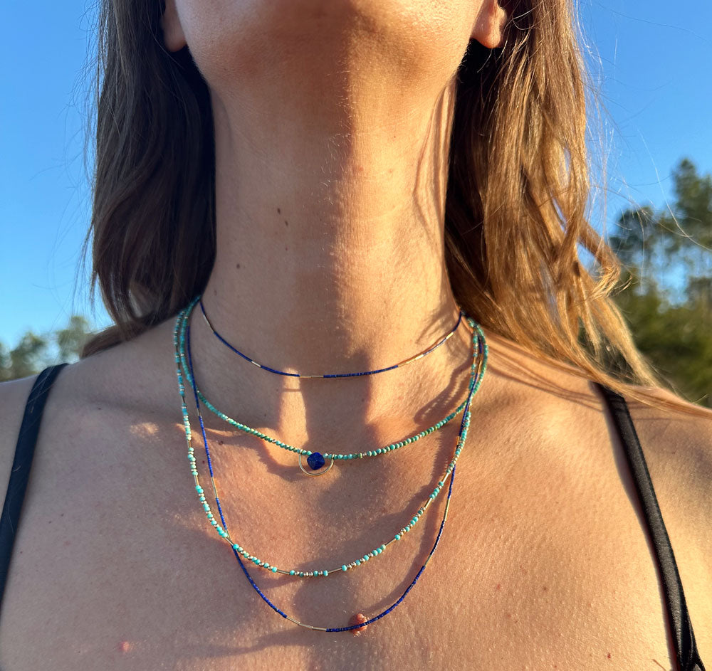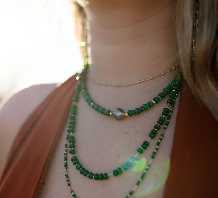 Making jewelry is how I slow down and connect — with the earth, with beauty, and with people. I love the way stones seem to hum with energy, how their colors can shift your mood or bring back a memory. I make each piece to be worn, loved, and lived in — a small reminder of the light, confidence, and beauty that already live within you. A quiet reminder of who you already are.